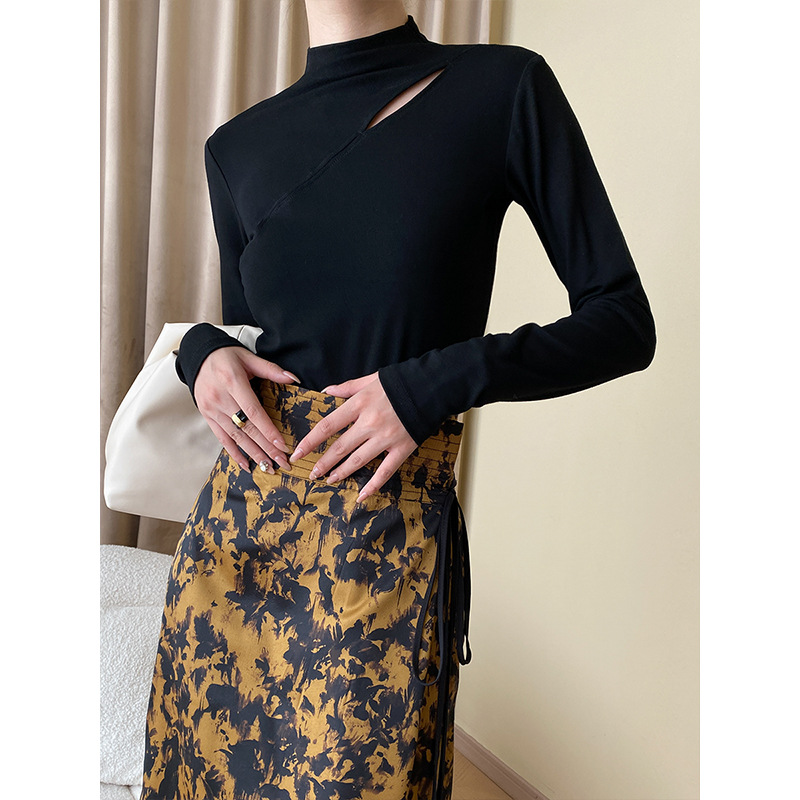 Sinan fashionable stitching design French style half turtleneck skin-exposed stretch T-shirt bottoming shirt SN4204