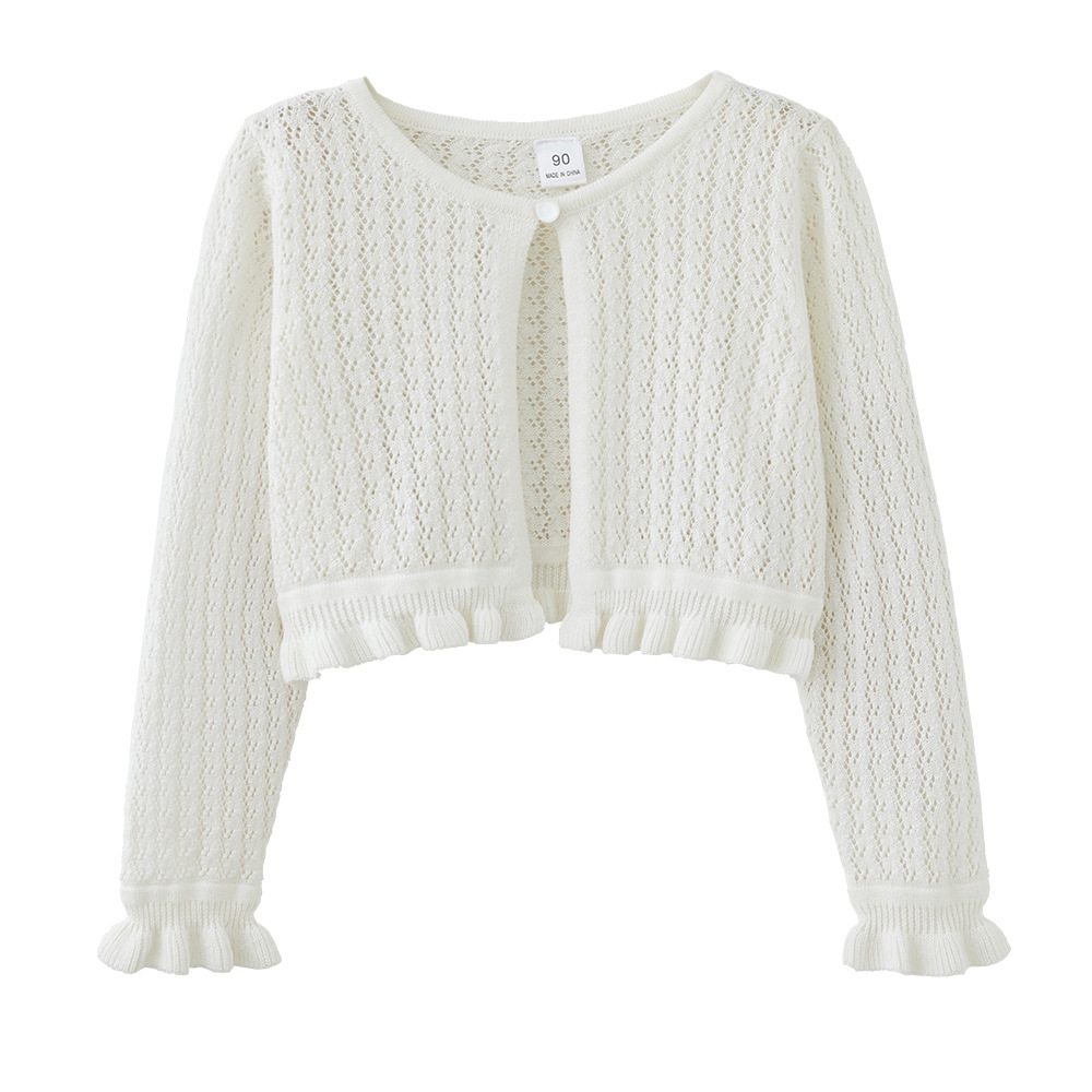 Cross-border Korean round neck hollow children’s knitted cardigan sunscreen air conditioning shirt summer thin wholesale girls coat shawl