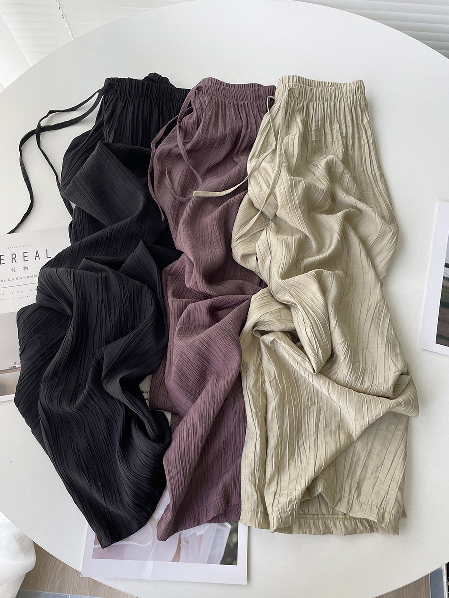 Summer drape pleated lazy ice silk cotton cool pants narrow straight casual plus size sports pants 8073