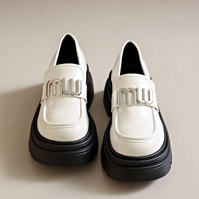 Spring and Autumn 2024 New Small Leather Shoes Casual All-match Fashion Thick Bottom Chunky Heel Slip-on Loaf Shoes