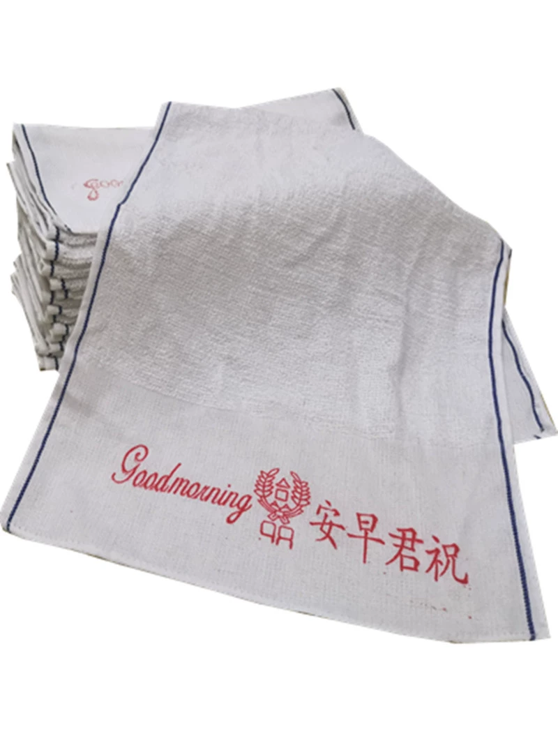Factory Direct Selling 96 Characters New Character Blue Border Industrial White Towel Decoration Cleansing and Preservation of Cotton Towel Wish Jun Morning Towel