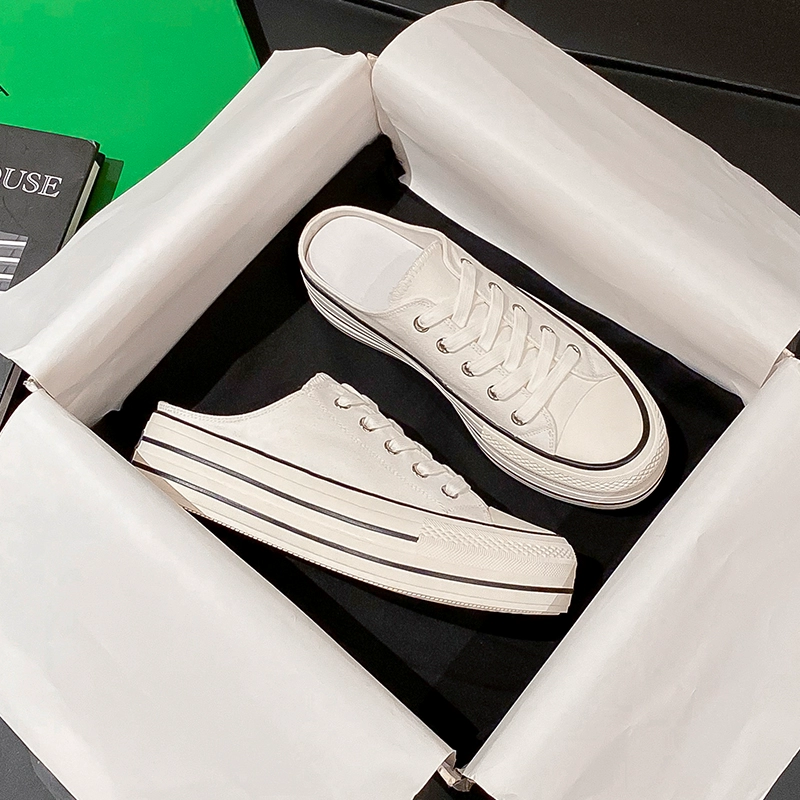 Baotou half-slippers for women, versatile summer outer wear, inner heightening, heelless white shoes, platform thick-soled slip-on canvas shoes
