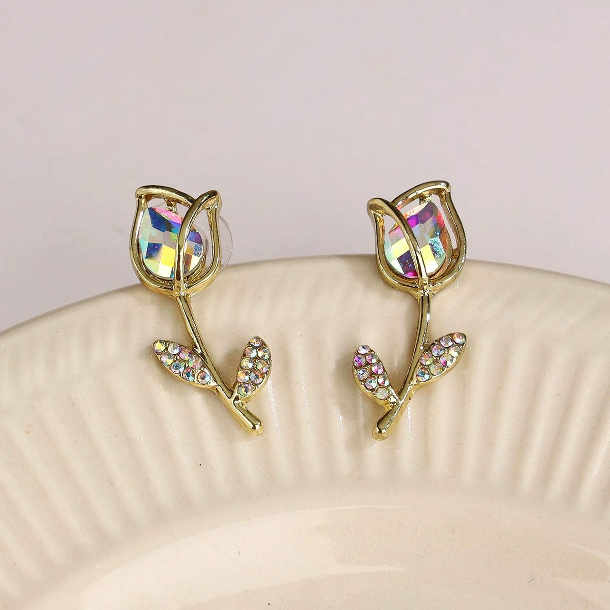 Micro -inlaid Douyin The same tulip girl sweet cat eye stone