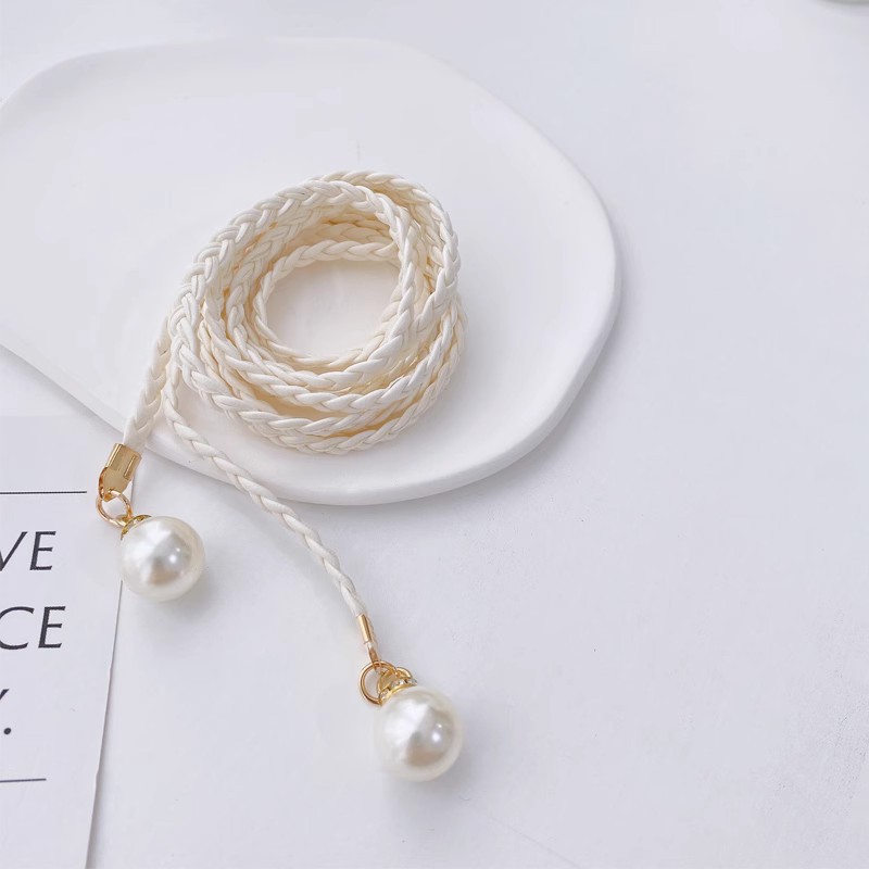 New Pearl thin narrow leather rope belt pants skirt decorative waist rope waist chain sweet fashion knotted waist seal for women