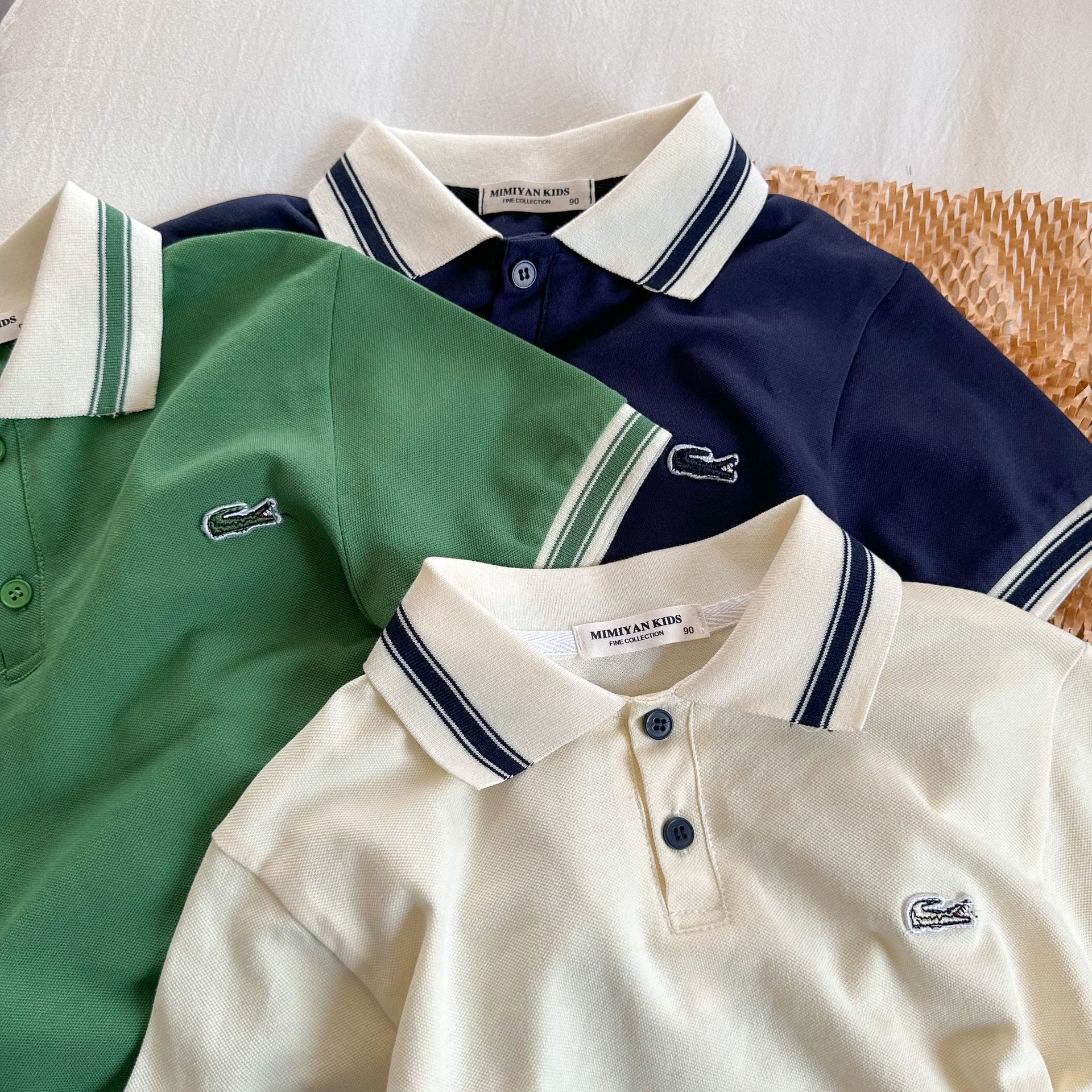 Boys’ cotton polo shirt 2024 children’s knitted loose T-shirt summer thin lapel top fashionable children’s all-match short sleeve