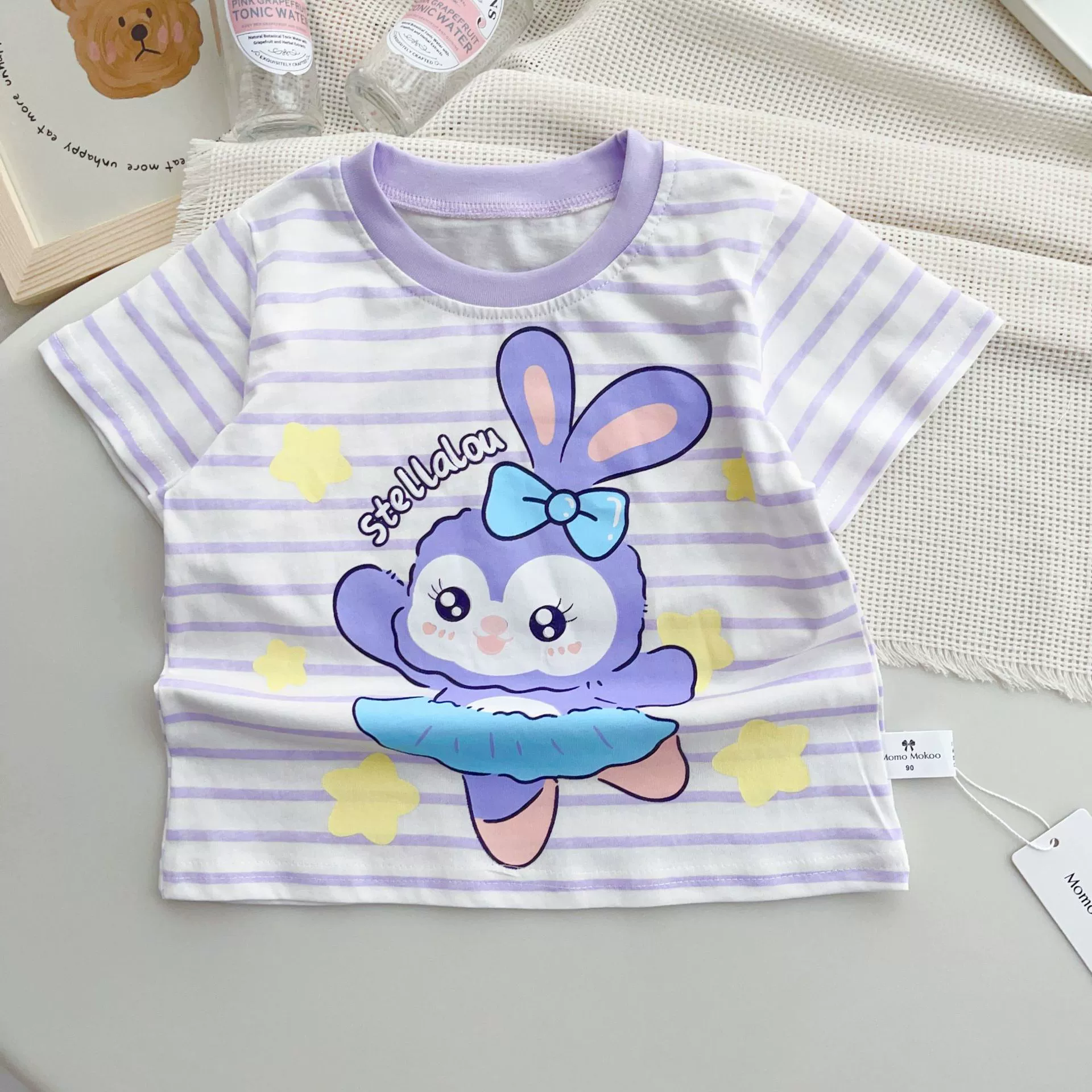 Cute baby striped outing cartoon short-sleeved T-shirt