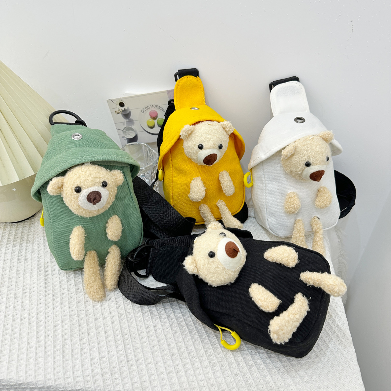 Korean Style Cute Cartoon Canvas Chest Bag Girl’s 2024 New Kindergarten Crossbody Bag Boy’s Lightweight Waist Bag