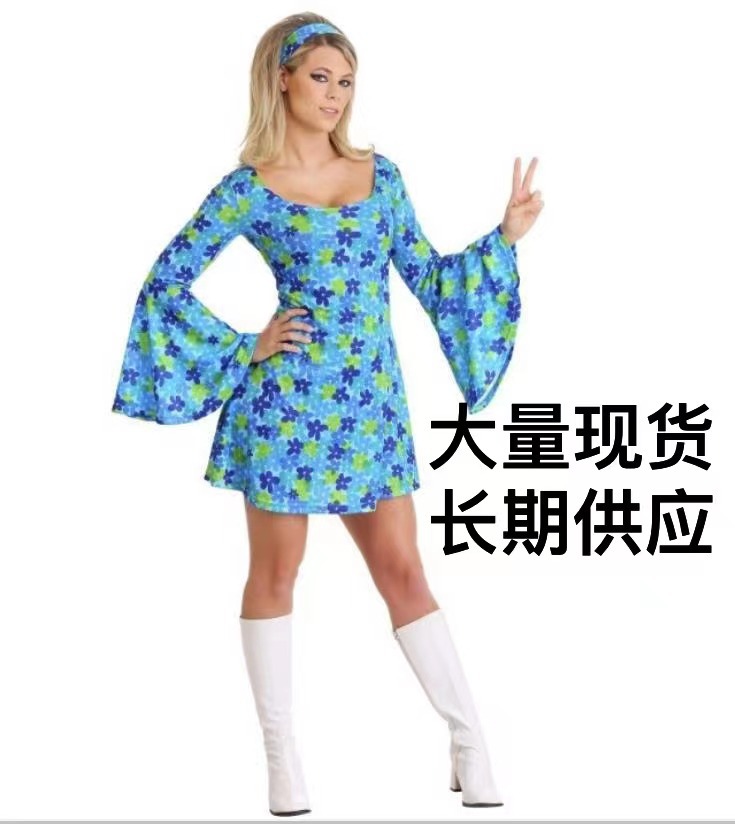 2023 cross-border Amazon AliExpress women’s wildflowers 70’s disco dress clothing print