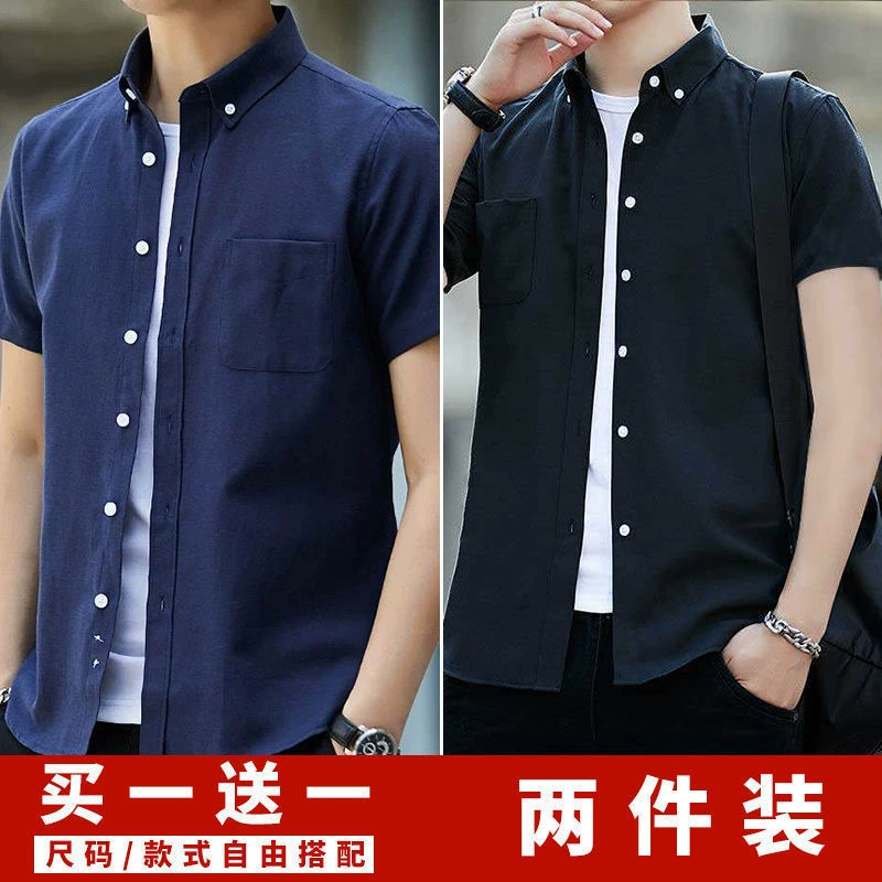 Dirty-resistant pocket work-wearing Oxford casual short-sleeved shirt