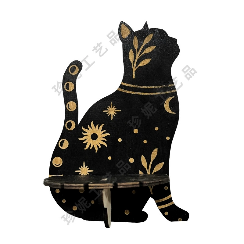 Cute wall rack wooden crystal rack wall-mounted display rack decorative wooden wall rack crystal stone storage rack decorative cat