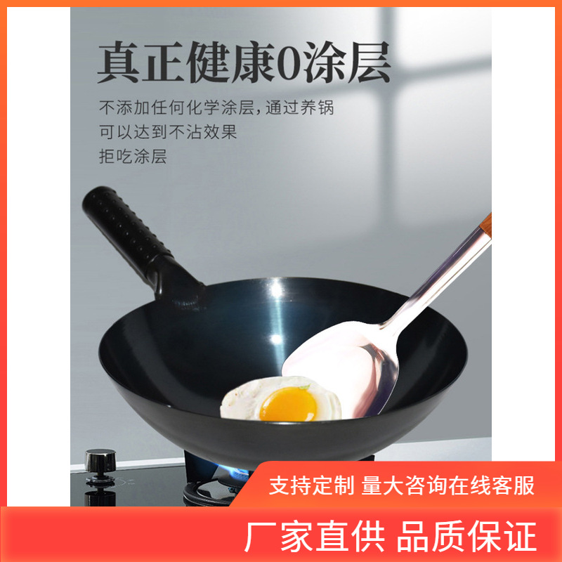 INC0 cooked iron old-fashioned iron pan household gas stove wok non-rust non-coated non-stick pan Chinese commercial frying pan
