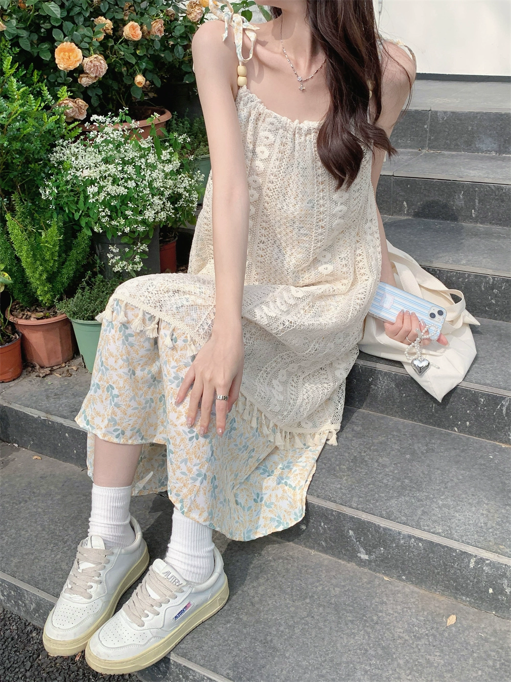 Women’s fringed French summer slimming suspender dress