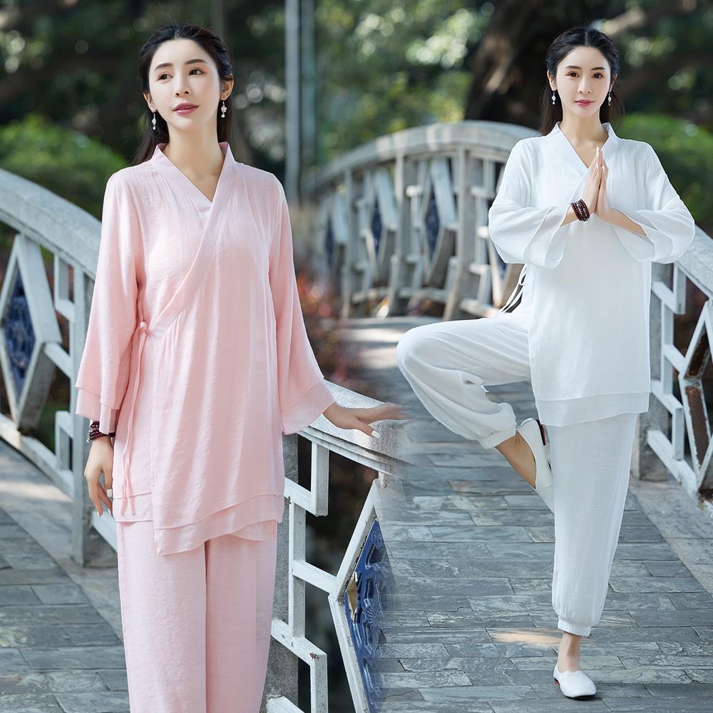 New 2023 ethnic style new cotton and linen Zen Suit Set 7 sleeve top elastic waist trousers two-piece set