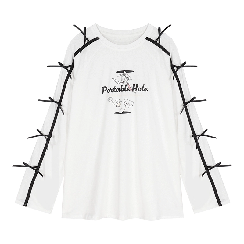 Women’s Contrast Color Long Sleeve Loose Casual Bow Print