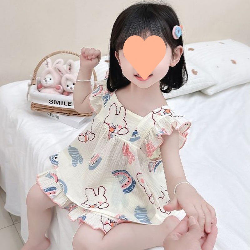 Baby’s Gauze Pajamas Girls’ Summer Short-sleeved Shorts Children’s Large Thin Sling Princess Style Home Clothes suit