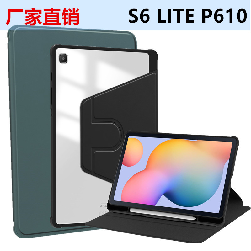 For Samsung P610 protective case S6lite10.4 acrylic rotating all-inclusive pen slot through the shell ultra-thin leather case tide