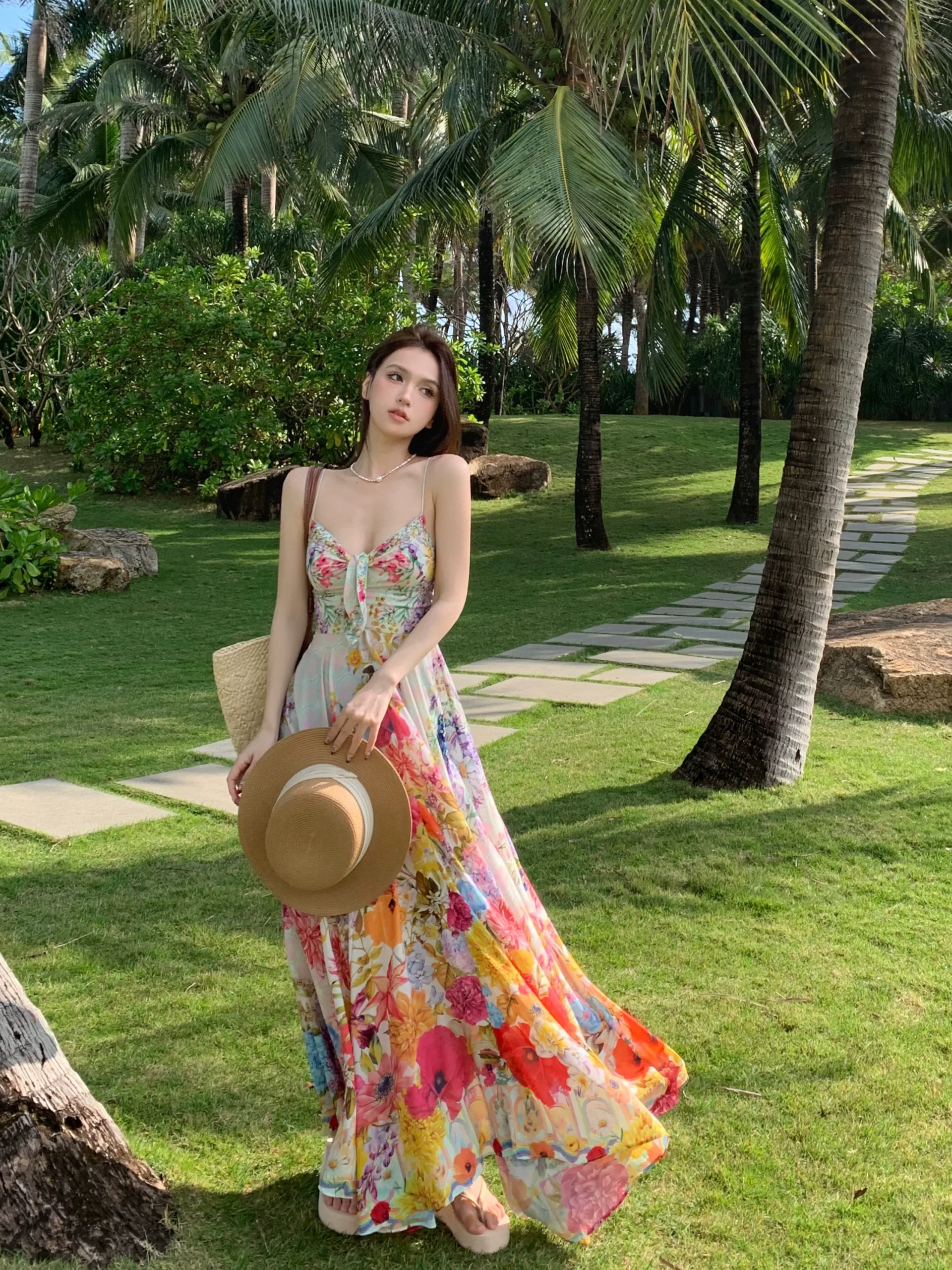 2023 Cross-border African Ethnic Costume Dress Large Swing Skirt Chiffon Rhinestone Robe Digital Printing with Inner Group