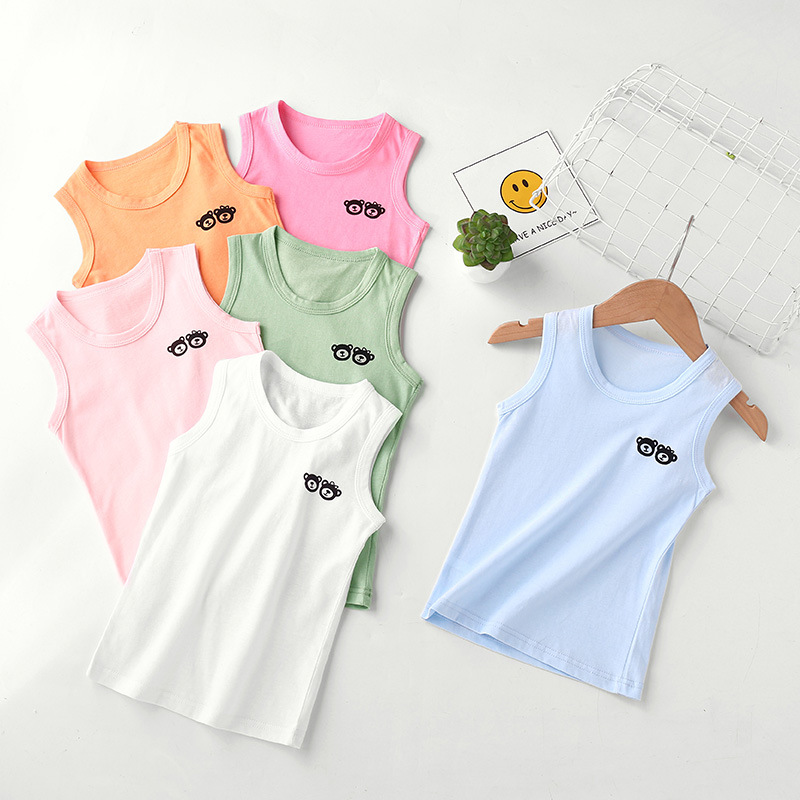 Children’s Summer Thin Breathable Round Neck Pure Cotton I-Shapes Vest Children’s Cute Base Top Elastic Small Vest
