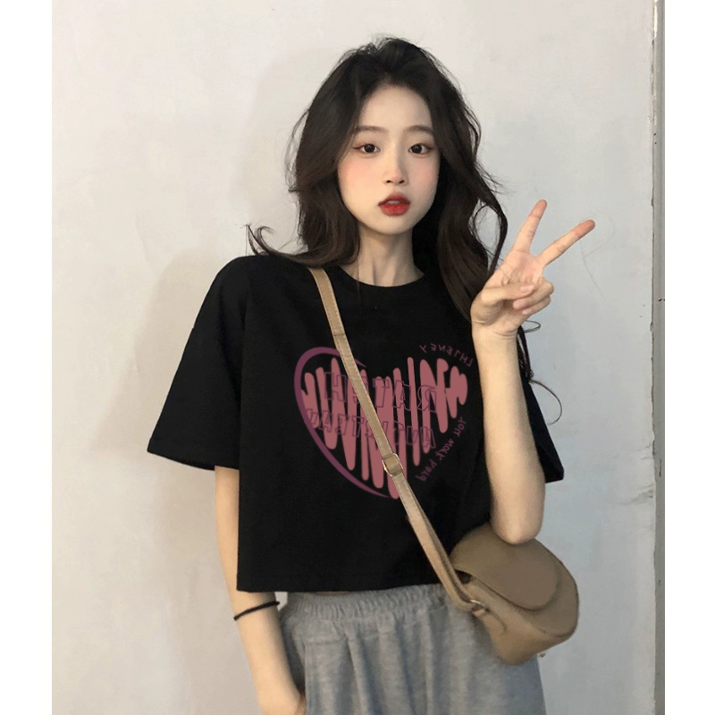 Chic shoulder-length summer short-sleeved navel loose T-shirt