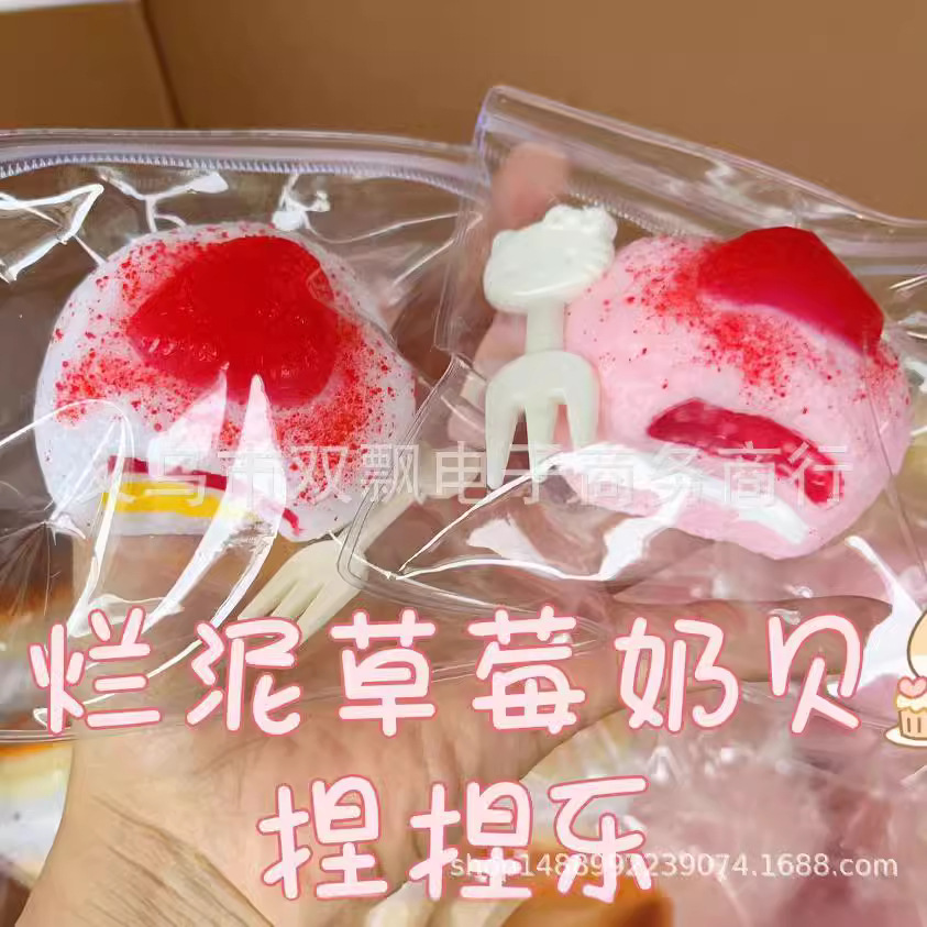 Little Red Book Same Style Mud Strawberry Milk Shells Kneading Music Simulation Food Play Sandwich Cake Imitation Silicone Decompression Toy