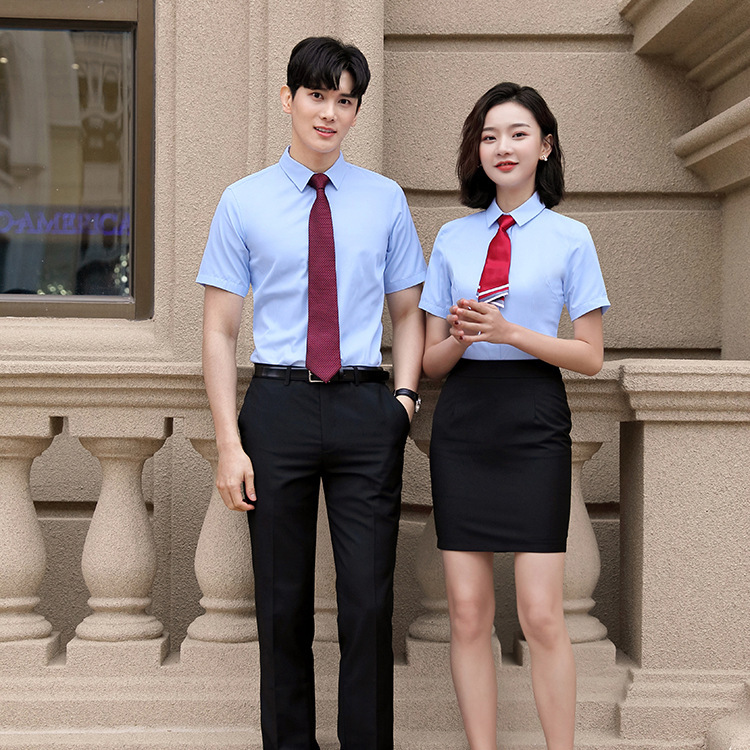 Professional Short-sleeved Shirt Women’s Summer Top Slim-fit Non-ironing White Shirt Men’s Bank Work Clothes Dress