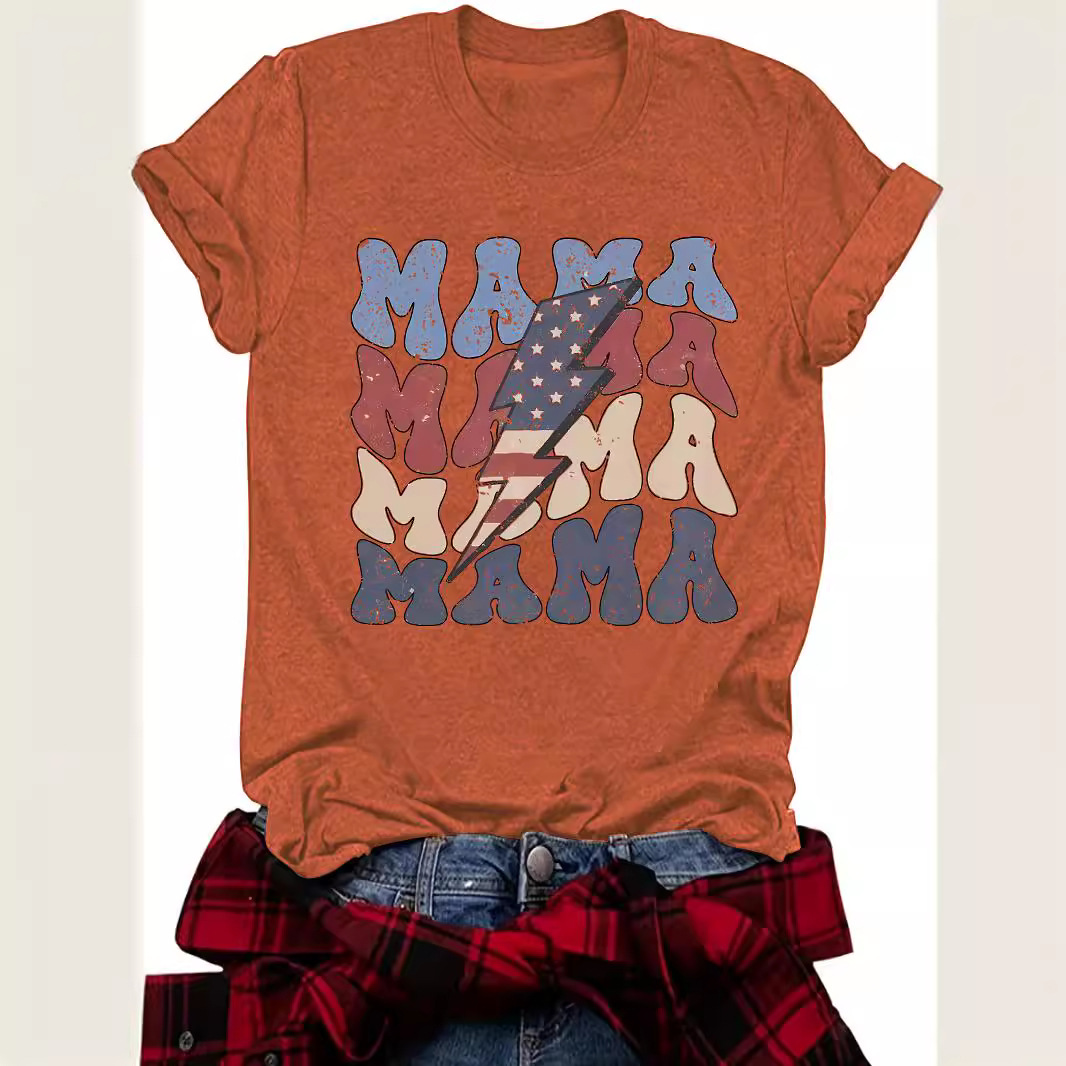 Amazon European and American Summer Women’s Mother’s Day Pattern Crewneck Short Sleeve Casual Fashion Foreign Trade Explosions T-shirt