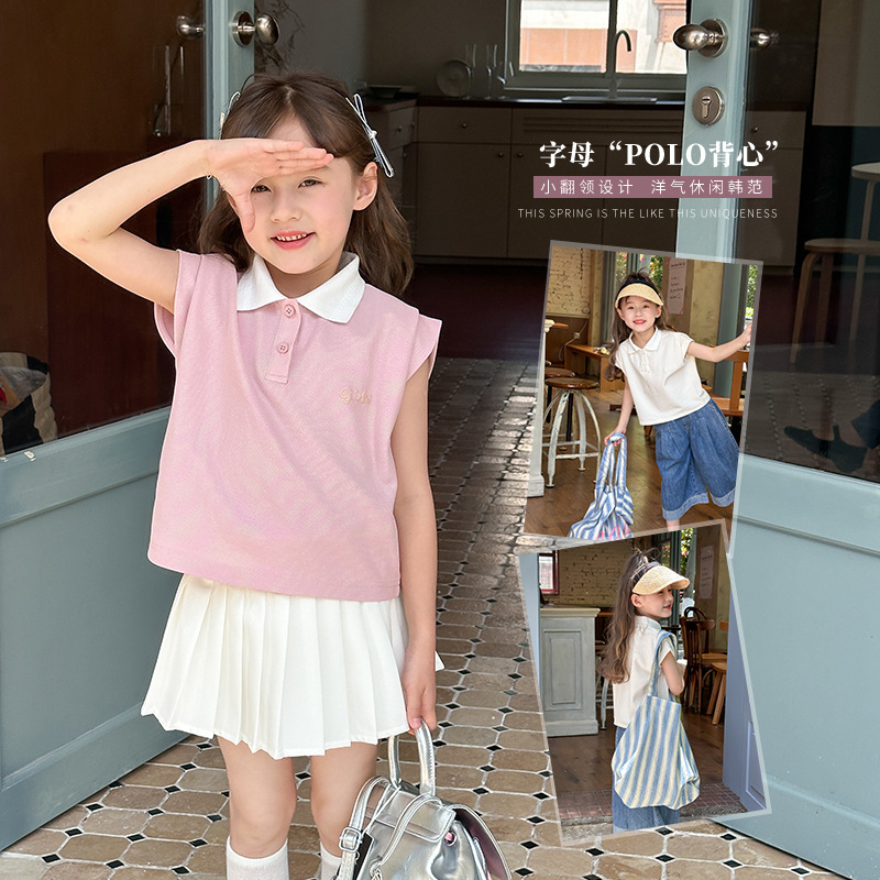 Elmo Beibei girls Korean style design sense small fly sleeve POLO shirt children’s western style casual color matching T-shirt 2024 summer