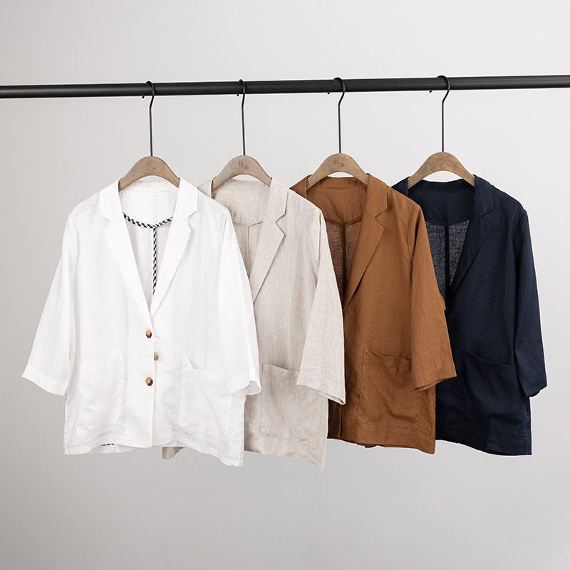 Suding 24 Spring and Summer New Suit Suit Loose Wash All Linen Material Elegant Commuter Slimming Solid Color Jacket
