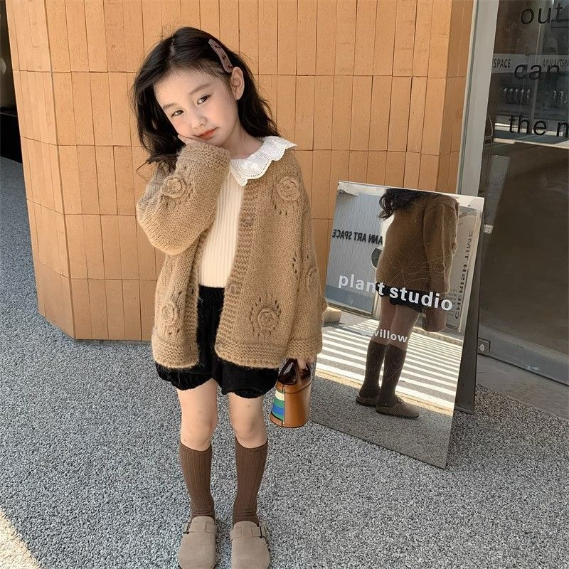 Korean style girl 2024 autumn and winter New lazy style flower knitted cardigan female baby fashionable fashionable top coat