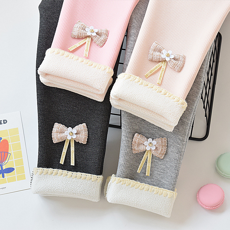 New autumn and winter fleece-lined thickened children’s warm leggings pure cotton outer wear western style girls’ cropped children’s pants