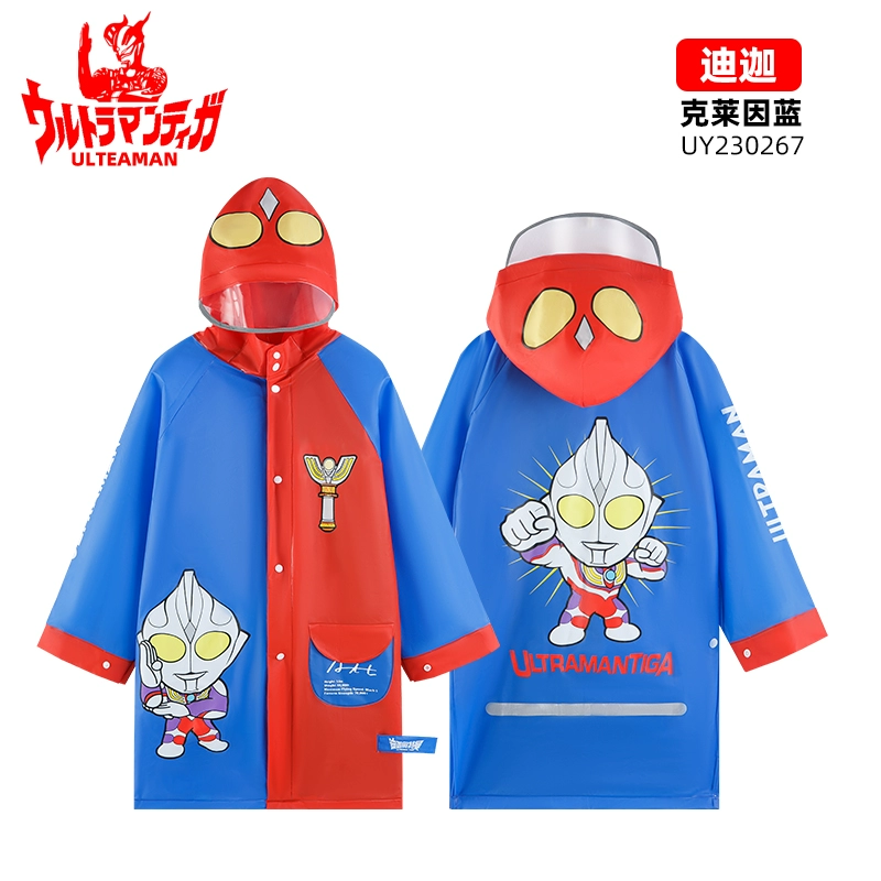 Ultraman children with schoolbags and raincoats