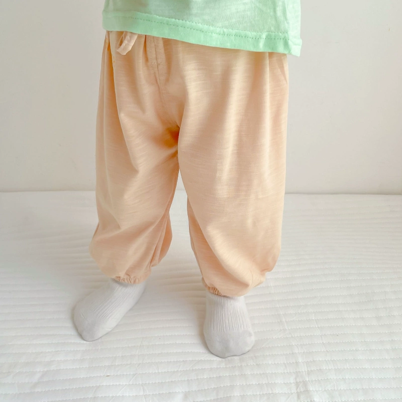 Summer neutral slub cotton loose casual pants thin