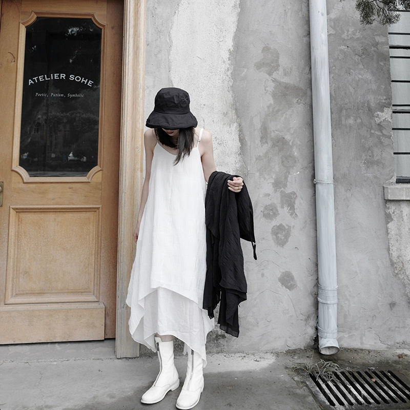 Wrinkled dark homemade irregular mourning suspender skirt