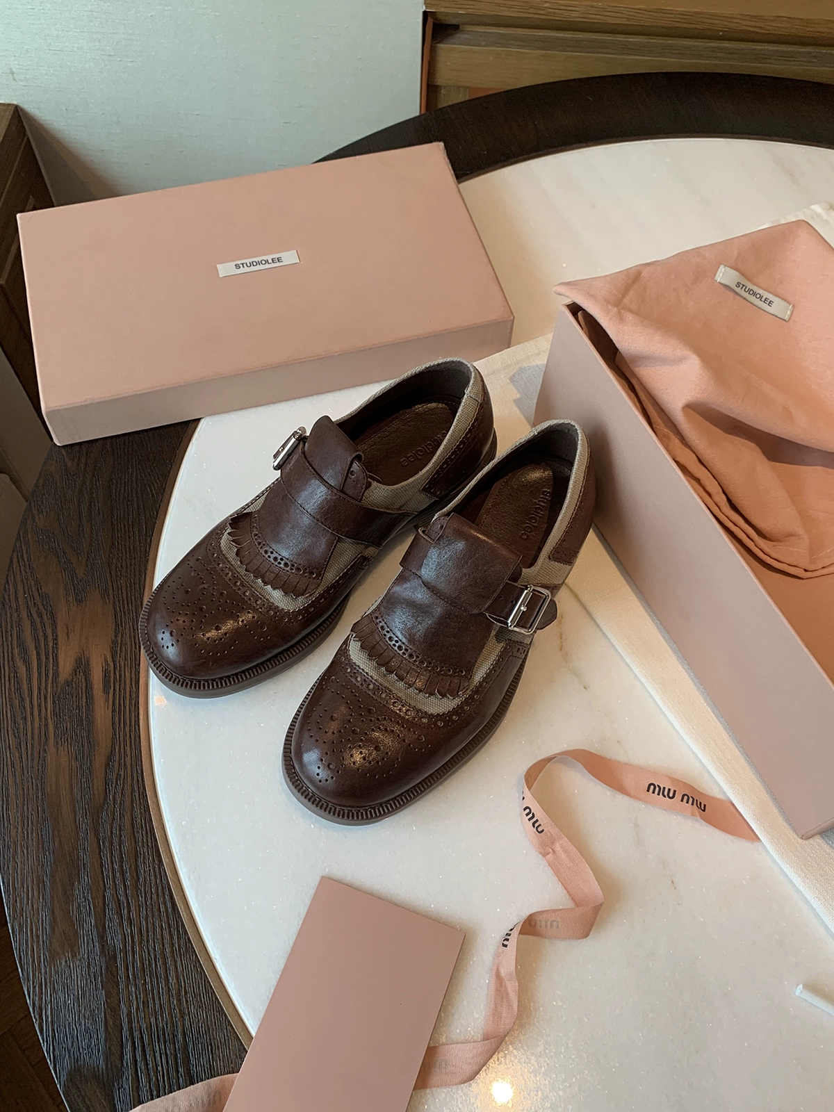 Cowhide retro ancient carved handmade British Fengblock shoes