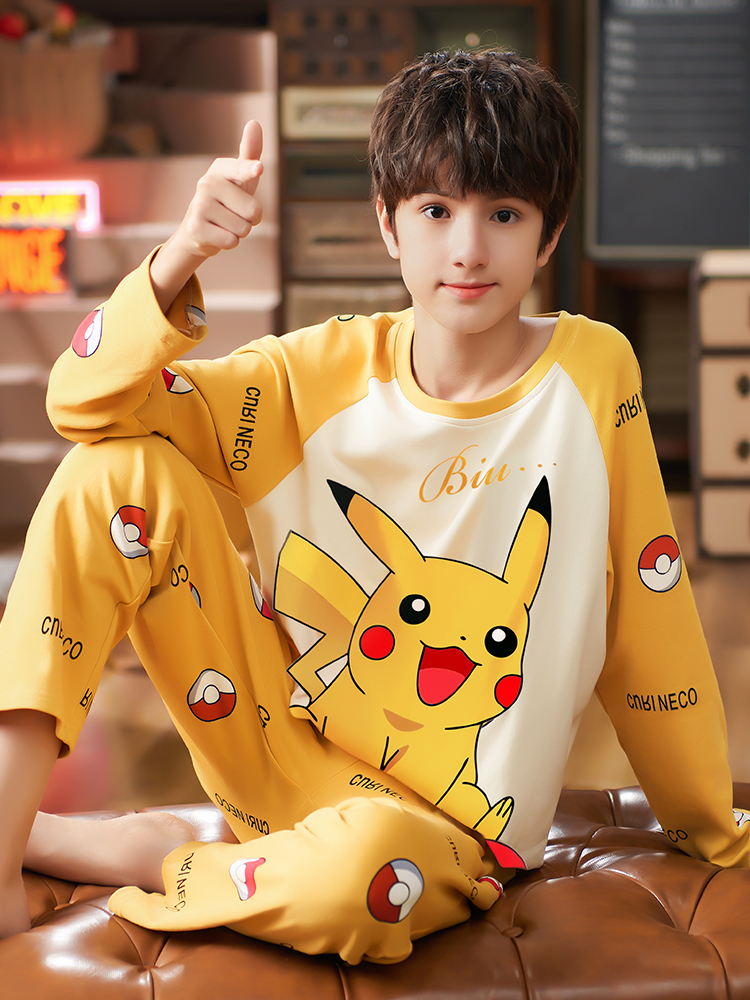 Spring and Autumn Pure Cotton Cartoon Little Boy Teen Pajamas