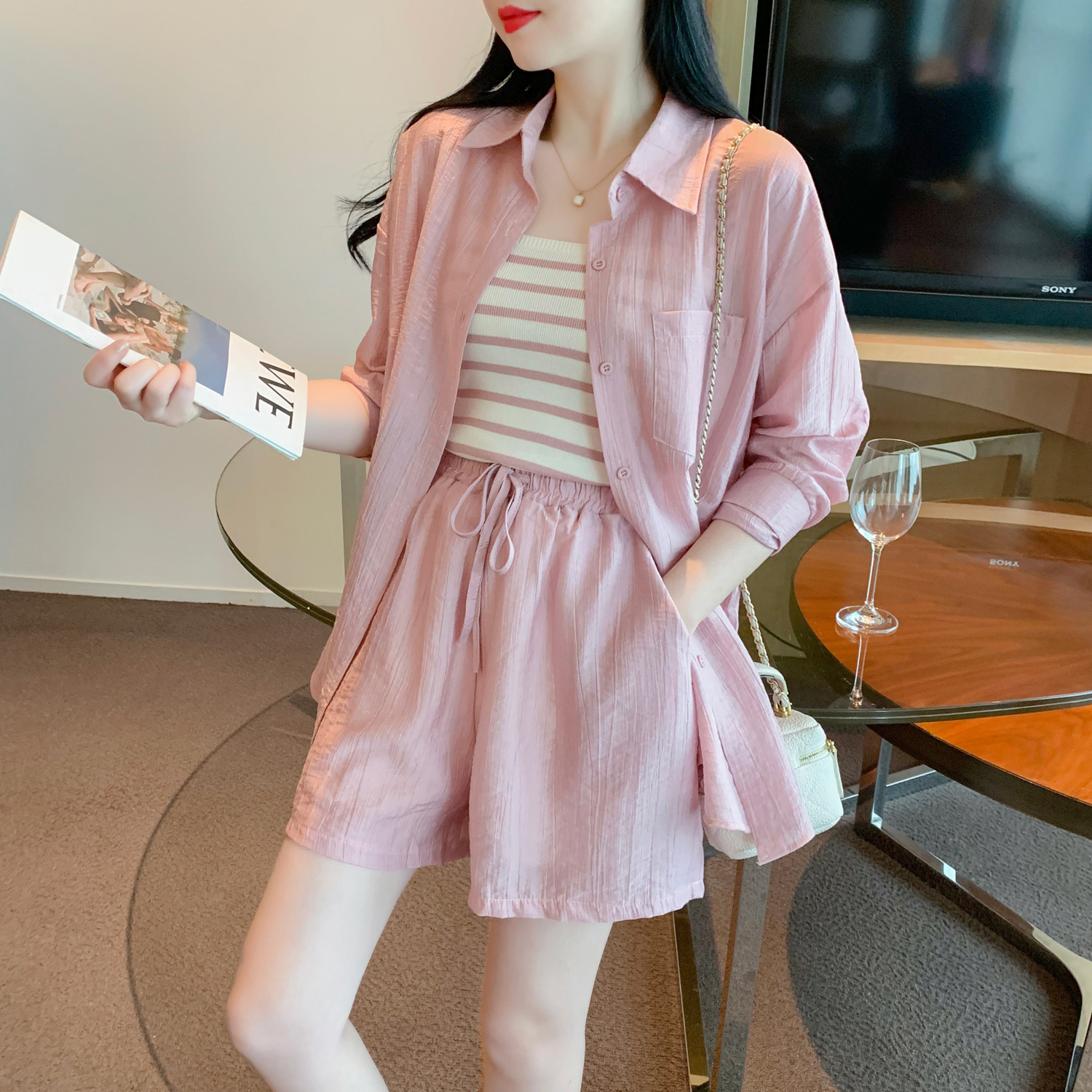 Salted Sweet Sun-protective Shirt Shirt Vest Short Pants suit Women’s Summer New Three-piece Set for Small Men