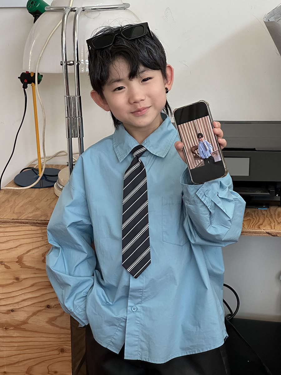 Boys’ Tie Shirt Spring and Autumn New Children’s Korean Style Western Style College Style Casual Long Sleeve Fashionable Loose Trendy Shirt