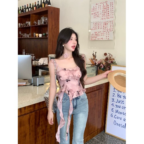 plus size Women’s Spring chubby girl Elegant V-neck Hanging Neck Design Pleated Slim-fit Inner Base Shirt Short Top T-shirt