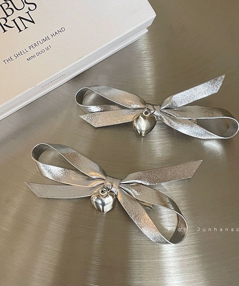 Love Silver Bow hairpin Temperature Bright Face Face Face Design Sensory Side Side Fymopo Delow Women
