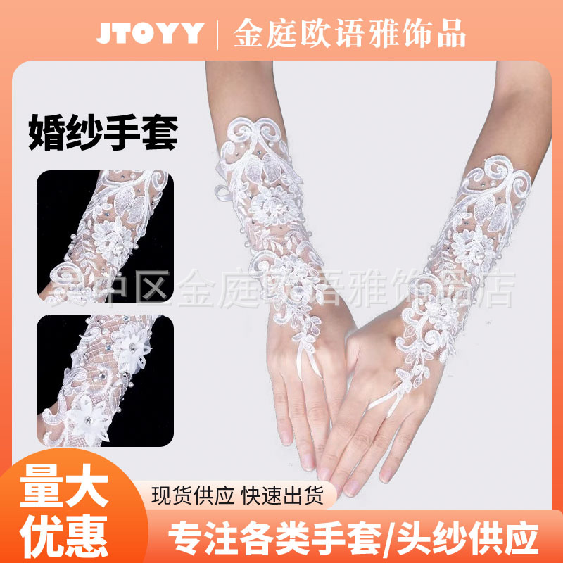 Factory Direct bridal wedding long wedding gloves pearl diamond lace photography dance studio
