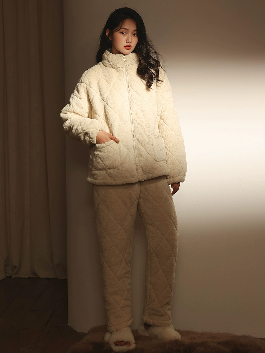 “Ultra -thick” warm pajamas Women’s winter three -layer thickened cotton pads and puffy jackets can wear coral velvet home clothes outside