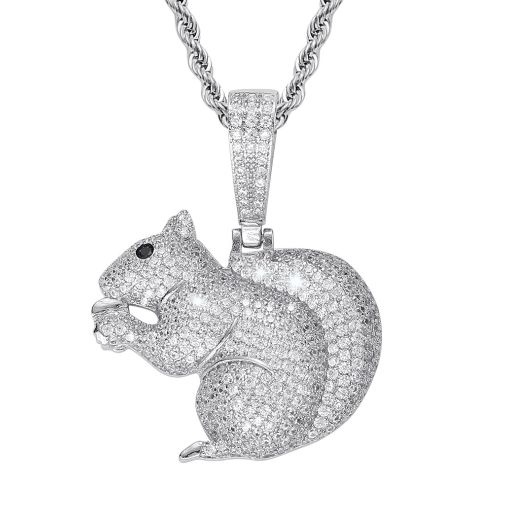 Hip-hop European and American micro-inlaid zircon cute little squirrel pendant small animal personality hipster hip-hop jewelry men’s and women’s accessories
