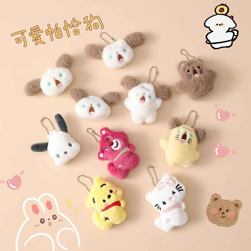 Cartoon plush animal doll brooch hip-up bear kitten puppy pig student bag hair accessories doll accessories