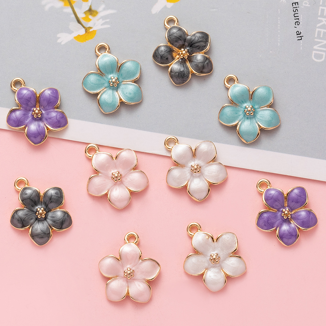 New diy jewelry accessories alloy oil cherry blossom lingering elegant wind pendant earrings hair accessories bracelet material wholesale