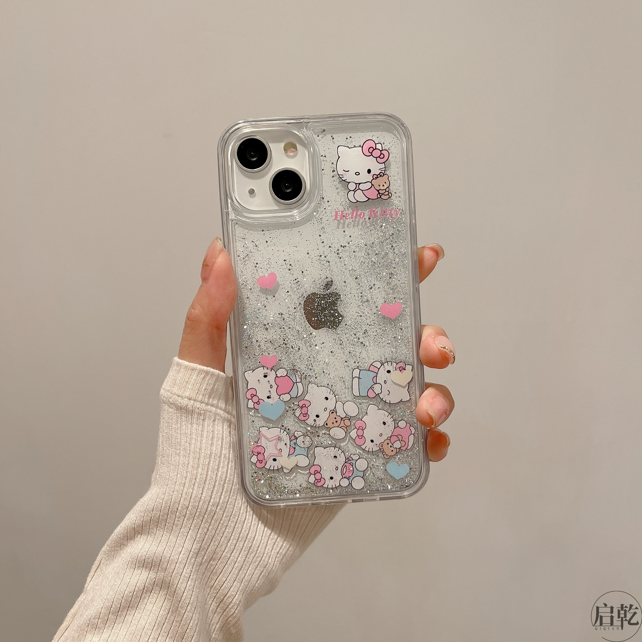 Qiqian quicksand shell Hello Kitty Kuromi iPhone14 mobile phone case suitable for Apple 13promax girl heart 12/11 cute cartoon niche creative kt internet celebrity new couple summer