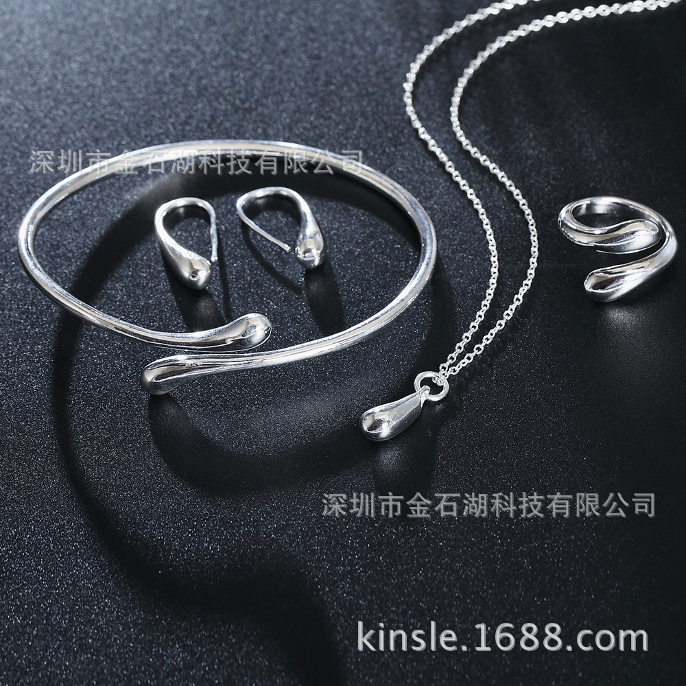 Spot European and American fashion silver-plated exquisite water drop bracelet necklace earrings ring water drop set from a set of batch