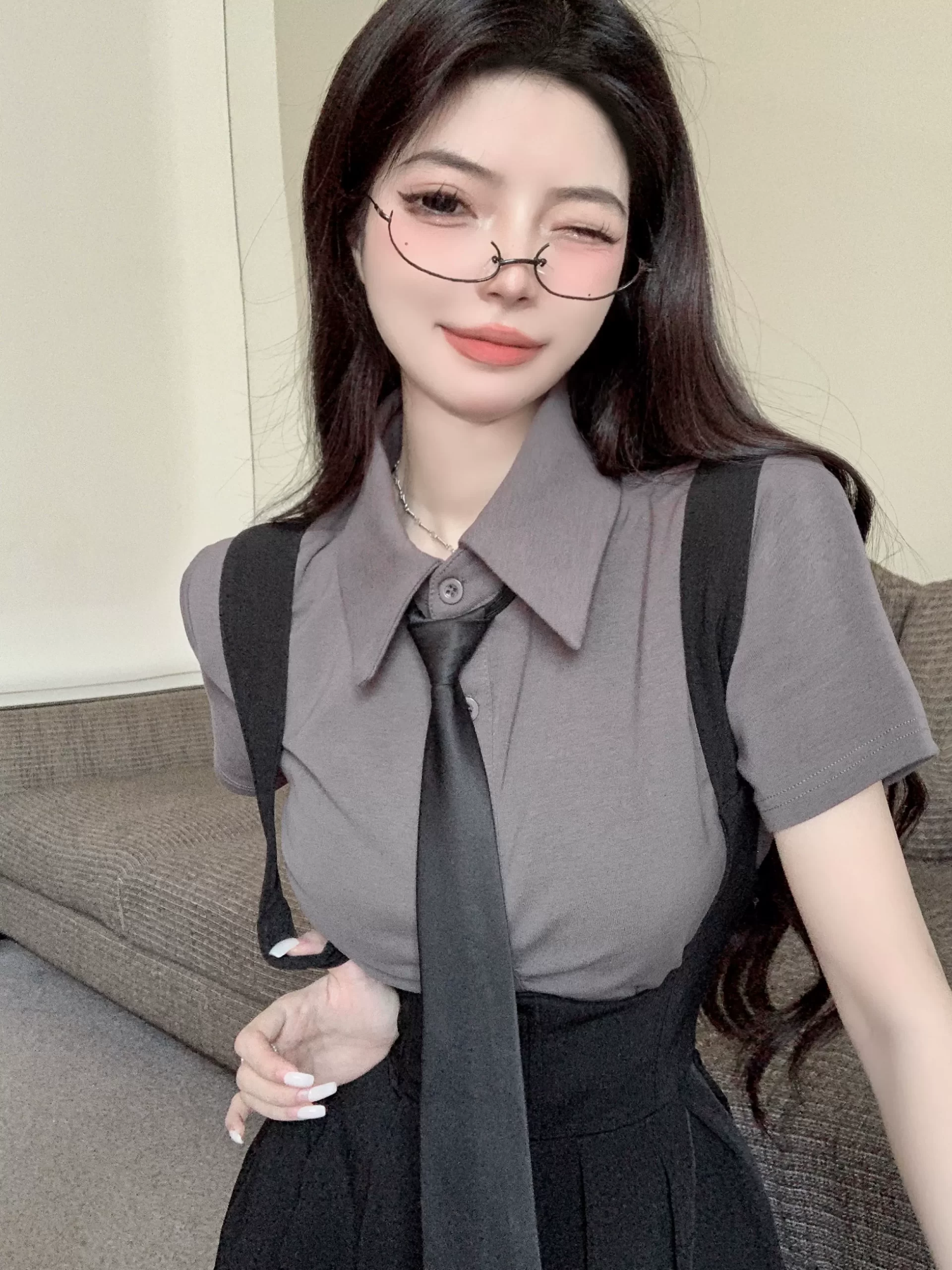 Large size college style shirt fat mm slim dress trombone strap skirt summer women’s new black suit skirt