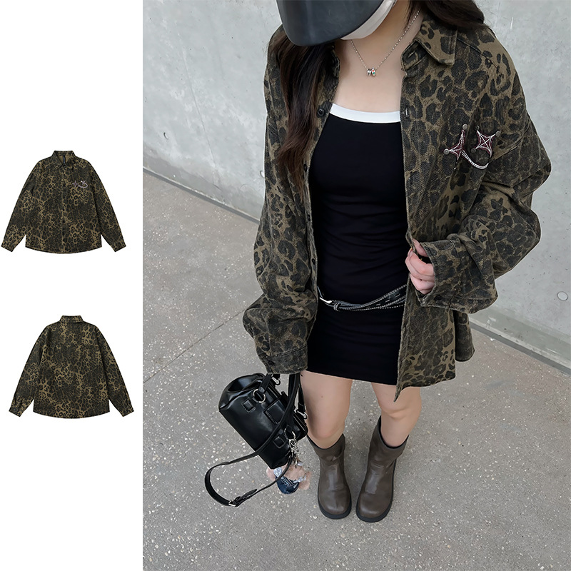 [Mu Ma] 2024 Autumn New Leopard Print Jacket Women’s Fashion Brand High Street Fashion Student Coat Couple Jacket