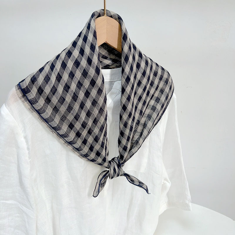 Spring and Summer Vintage Small Plaid Linen Square Scarf Artistic All-match Women’s Summer Neck Protection Small Silk Scarf Scarf Accessories New Products