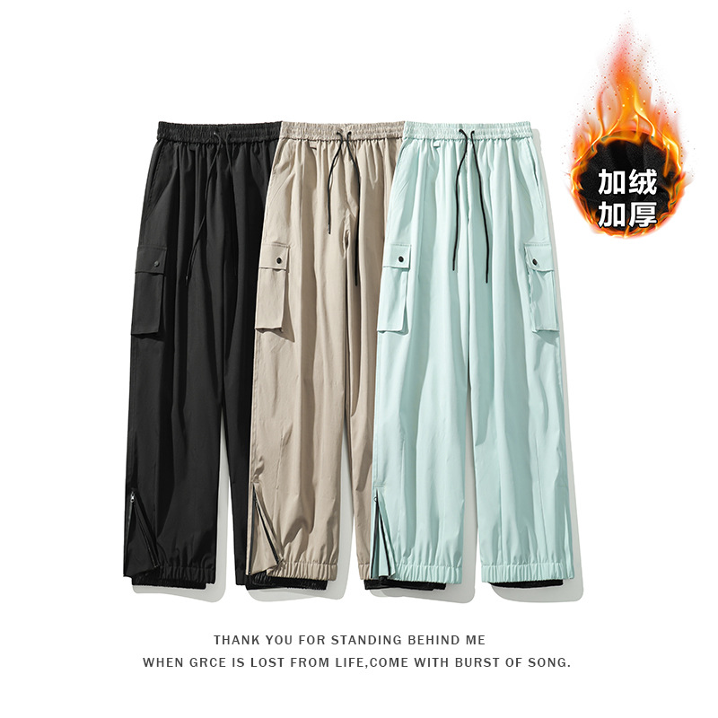 2023 Winter new ski pants men’s loose fleece-lined thick warm plus size outdoor casual pants